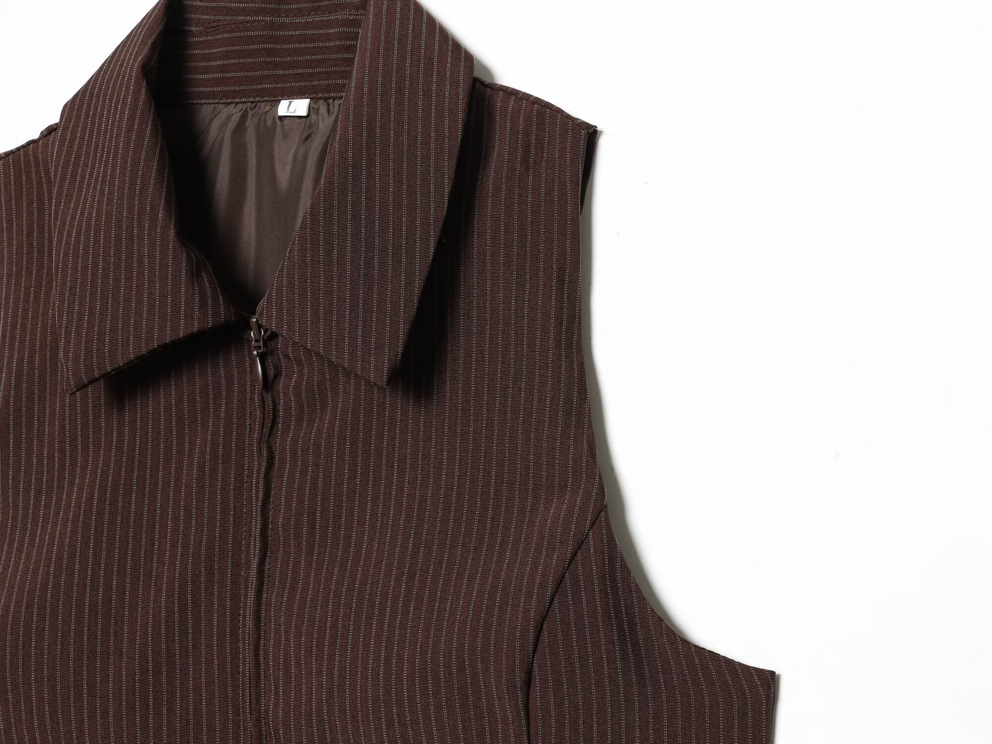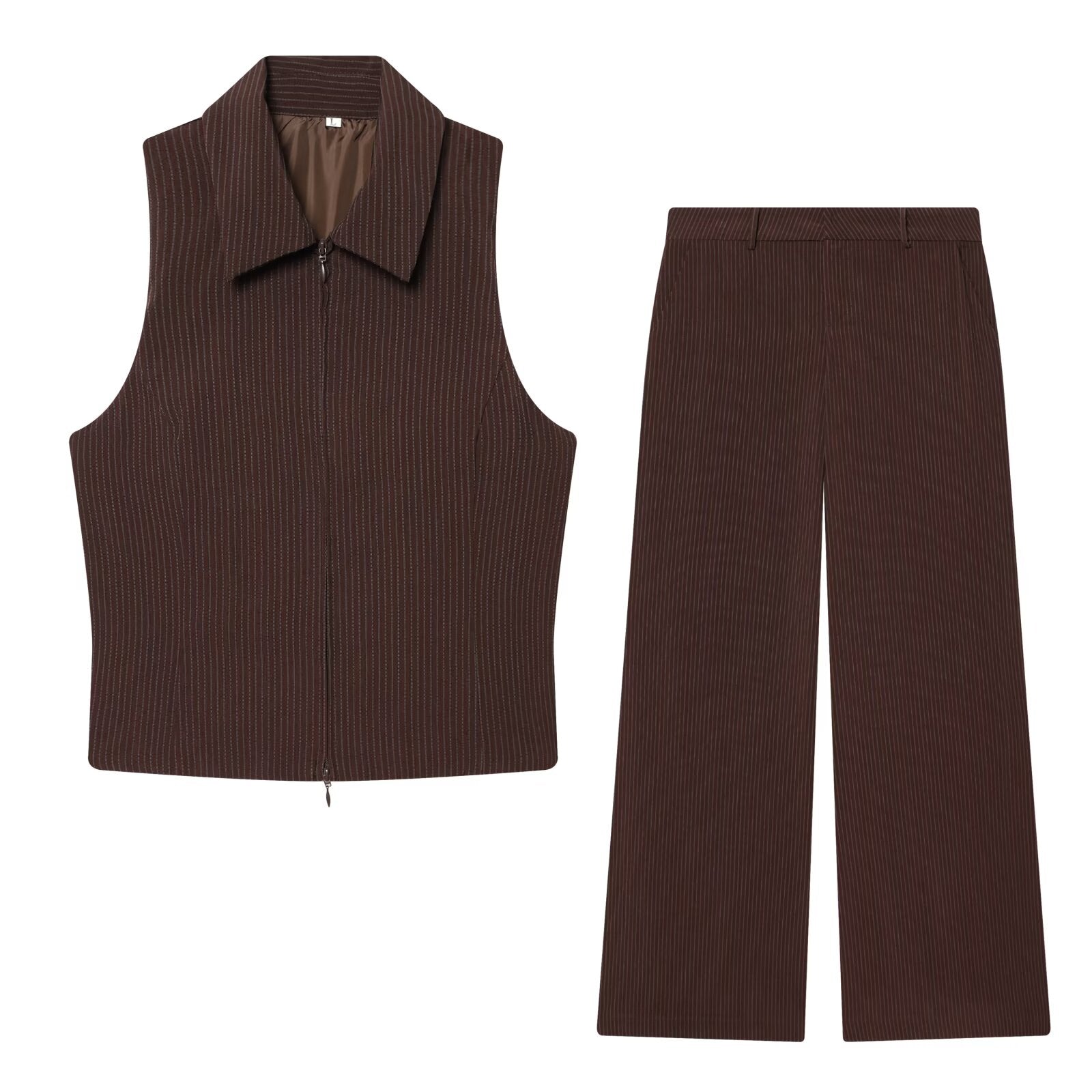 suit Women's 2 pieces sleeveless lapel striped zipper vest+Pants