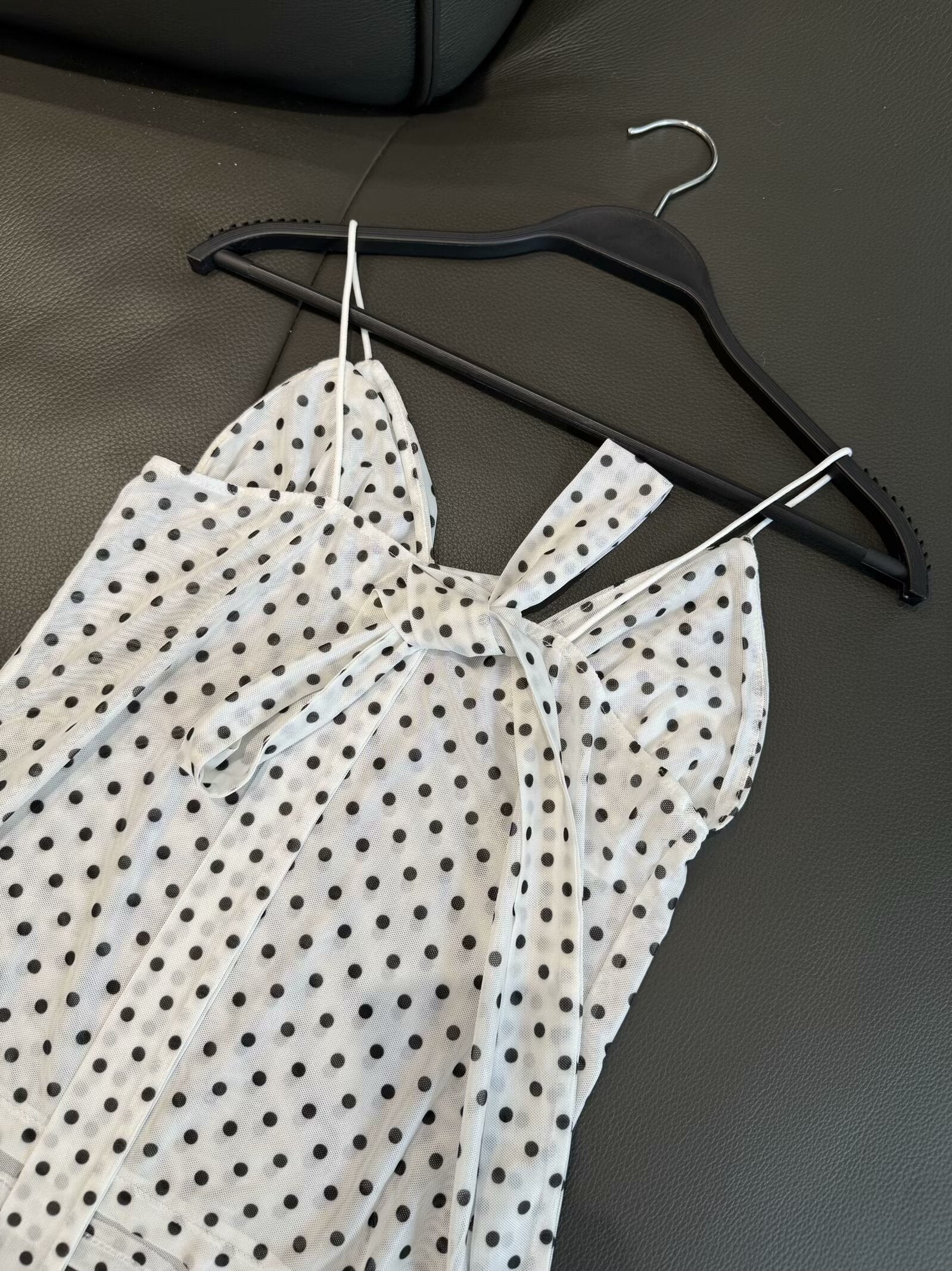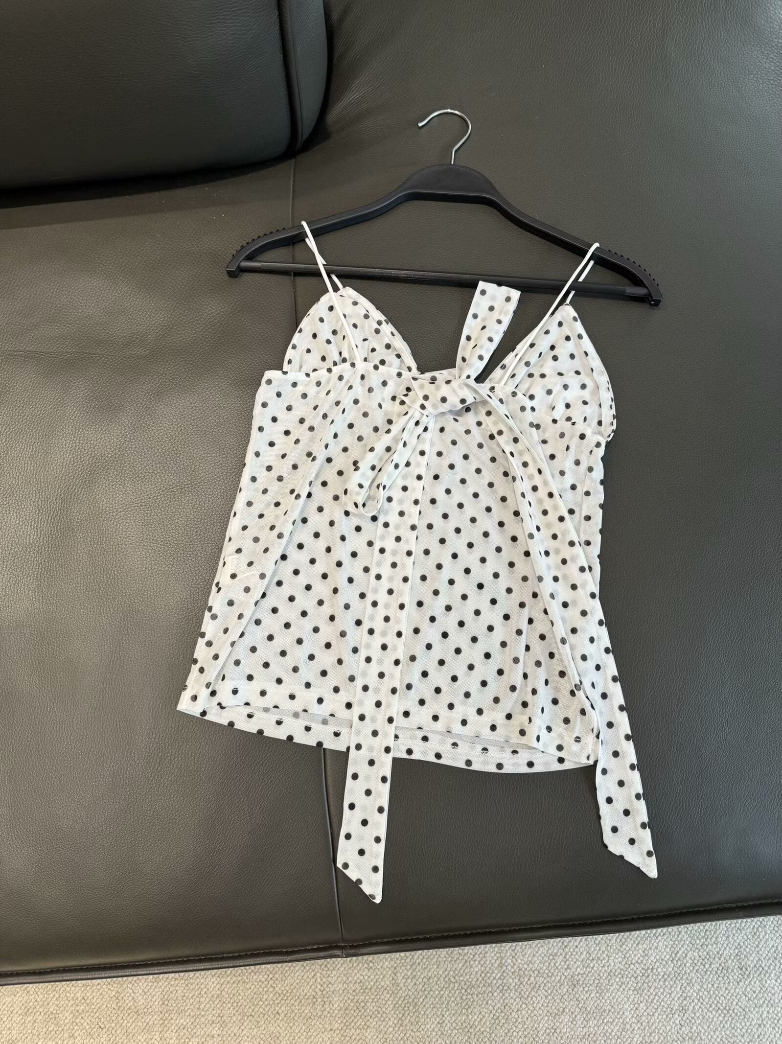 Women's 2025 new fashion scarf decoration polka dot printed top