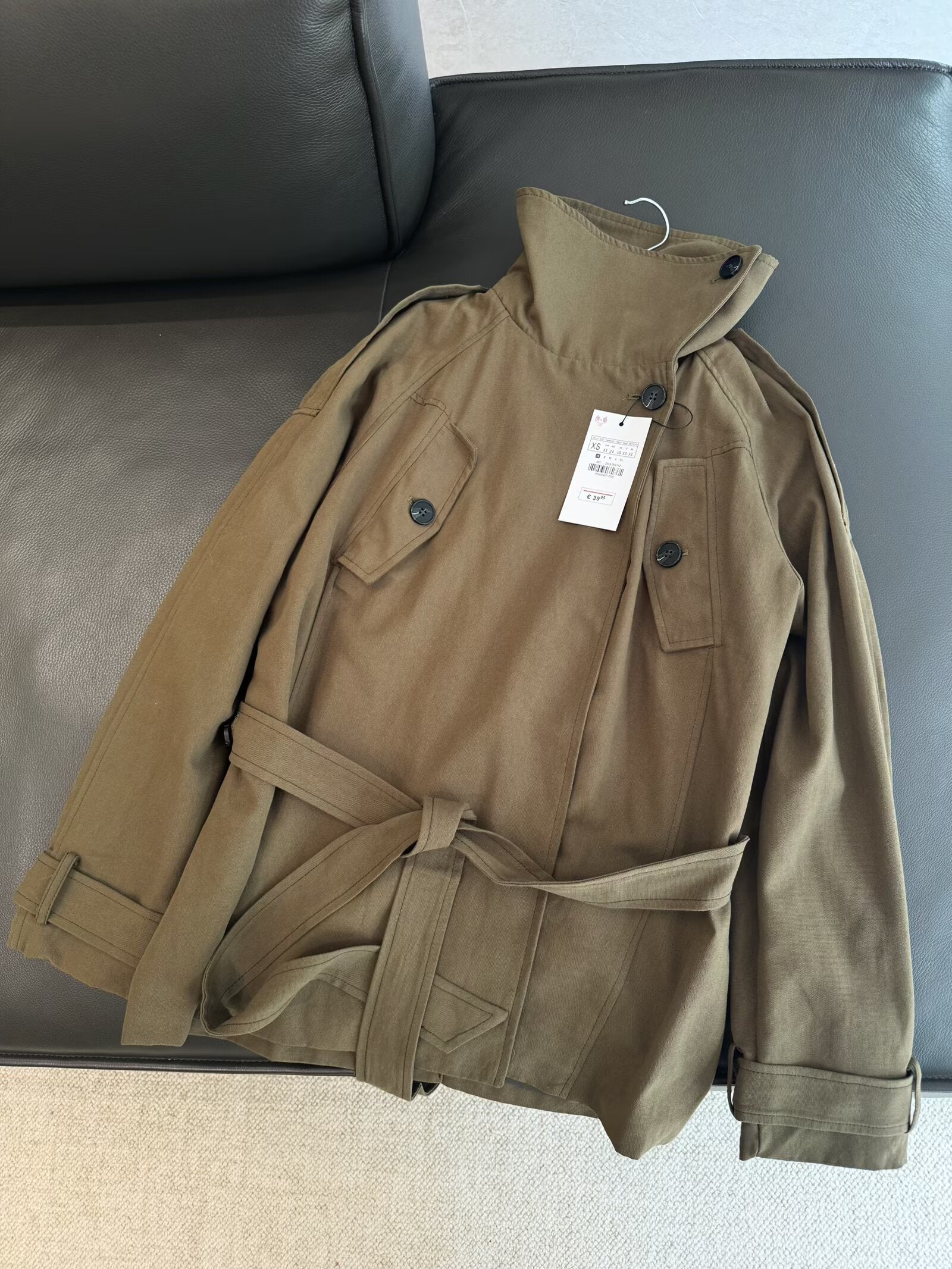 Women's 2025 New With Belt Stand Collar Cotton Windbreaker Coat