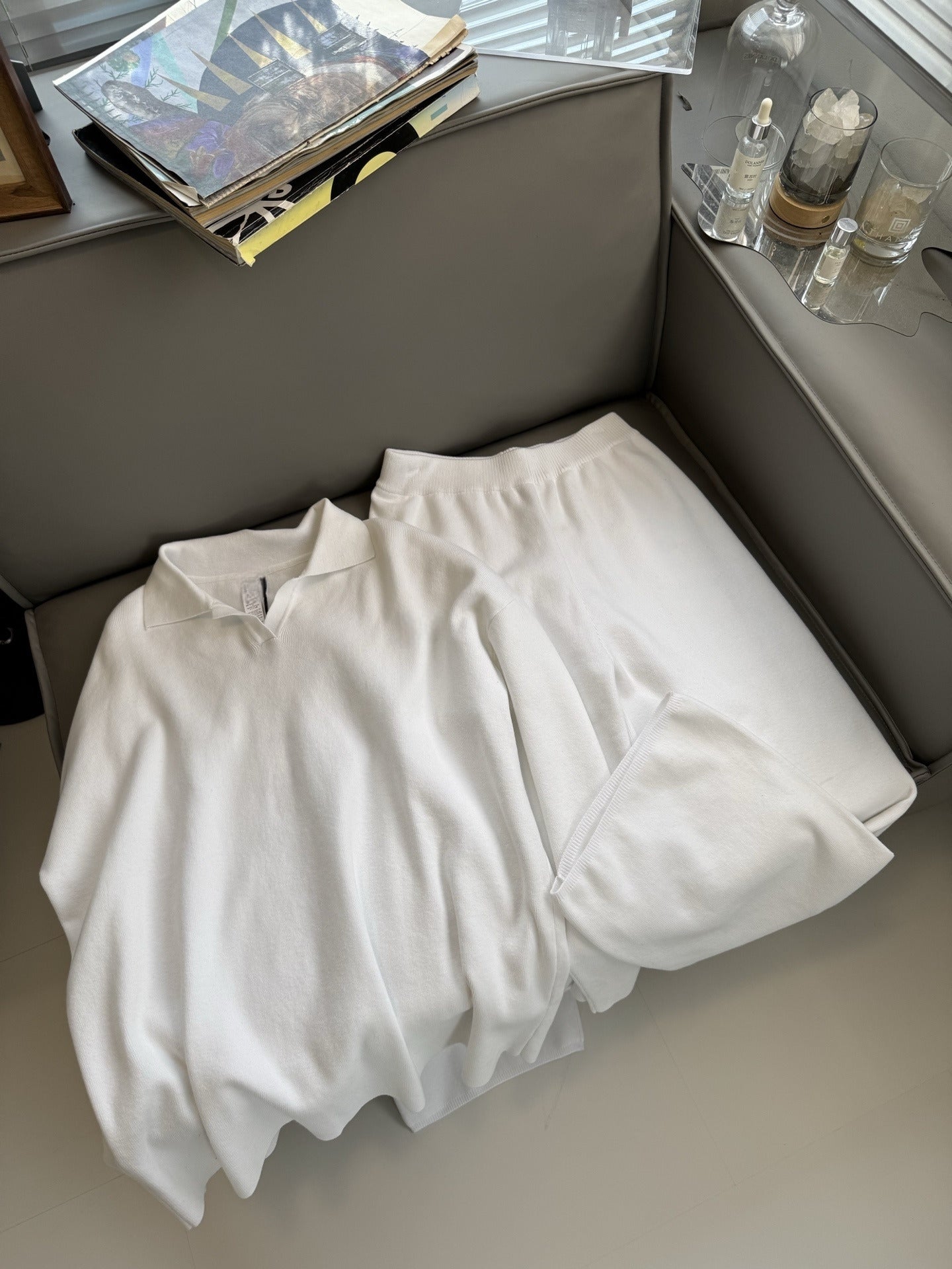 Women's new casual Joker suit Polo neck knitted pullover wide-leg trousers two-piece knitted suit