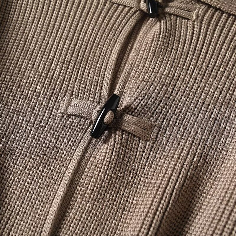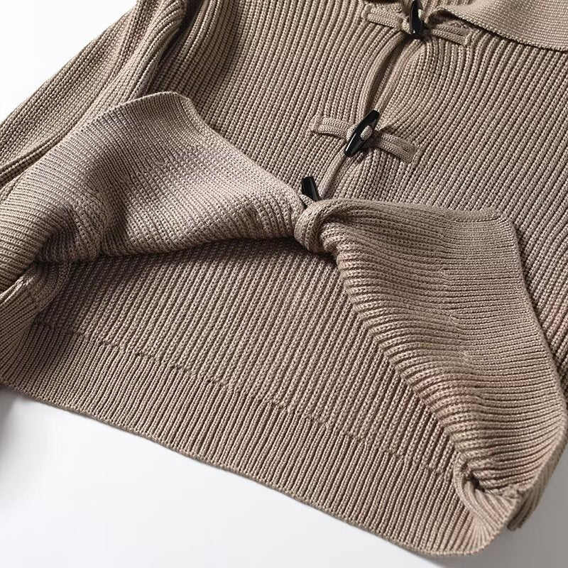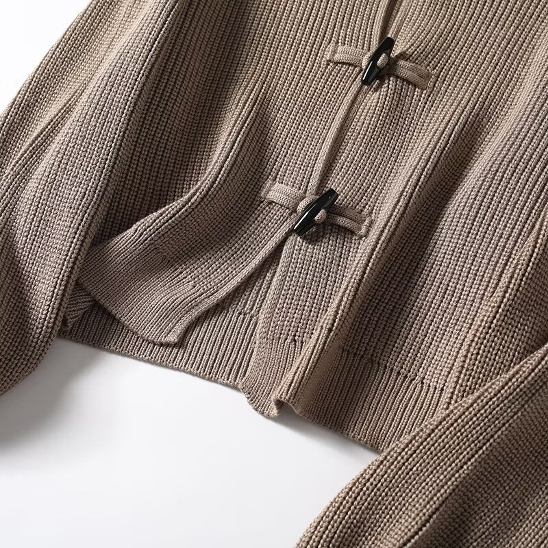Women's new fashion casual cow horn button coarse knitted cardigan